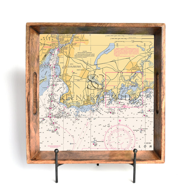 Burnt Wood Serving Tray: 14" mango wood serving tray with a matching image.