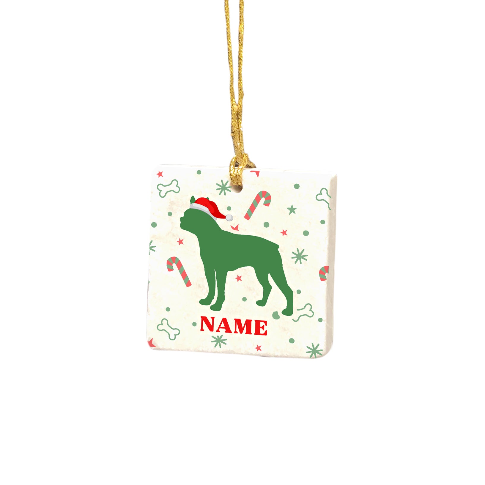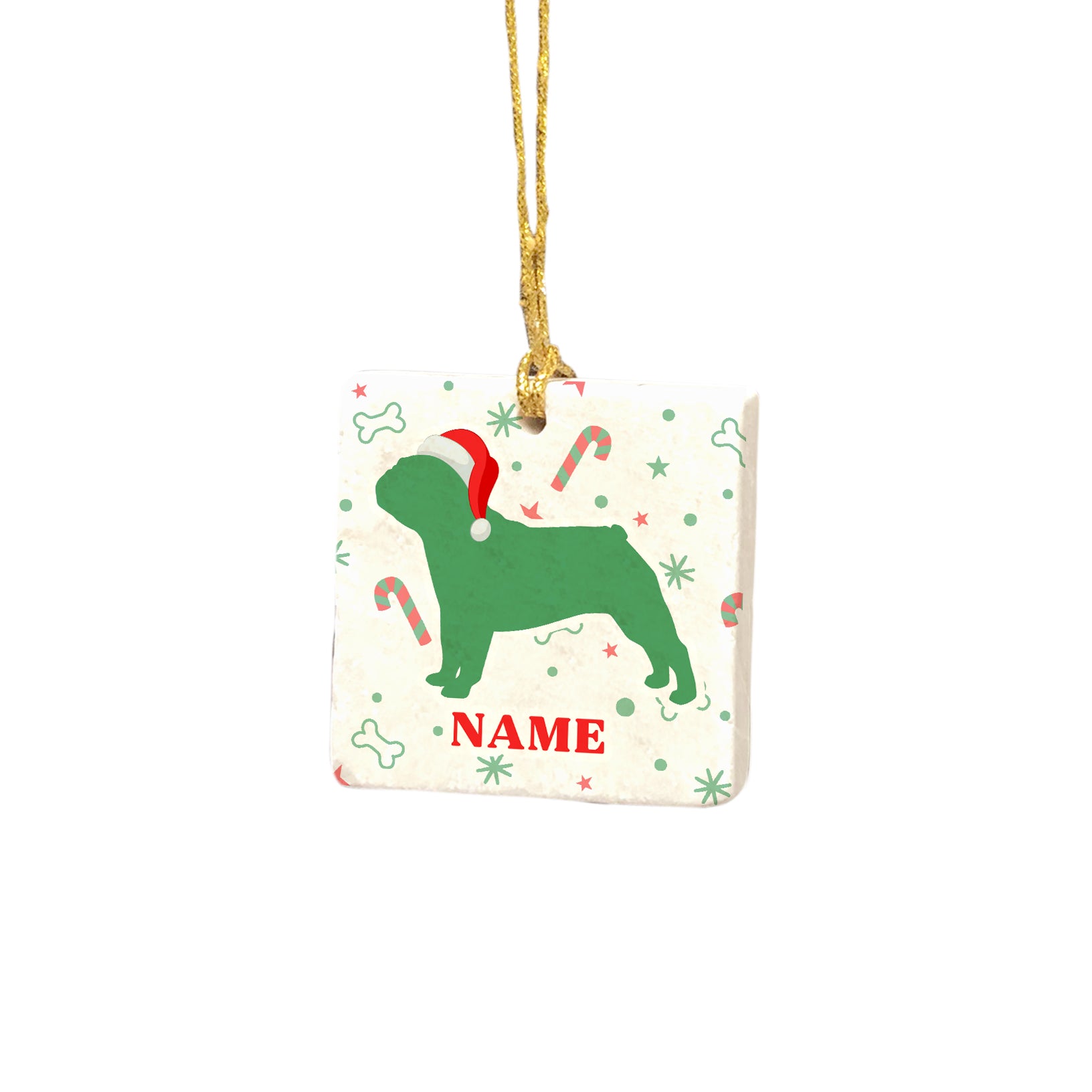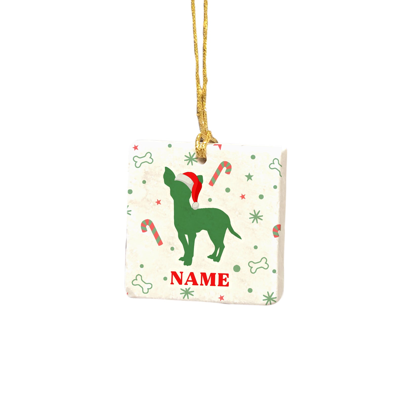 Each ornament features your pet’s silhouette and name, complete with a festive Santa hat and holiday pattern — the perfect way to show off your pup’s personality on your Christmas tree.