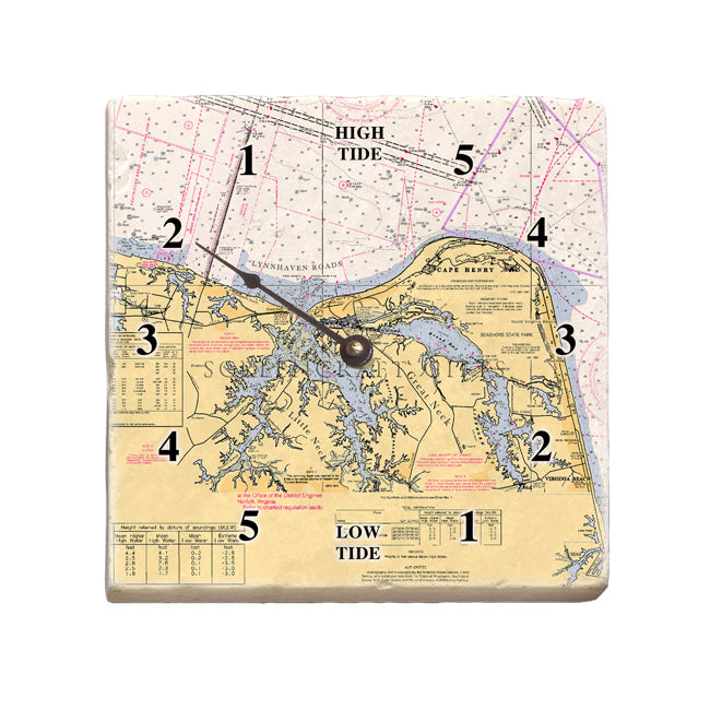 Tide clocks don’t show the time of day, but rather the time remaining until low tide or high tide. Learn more about tide clocks.