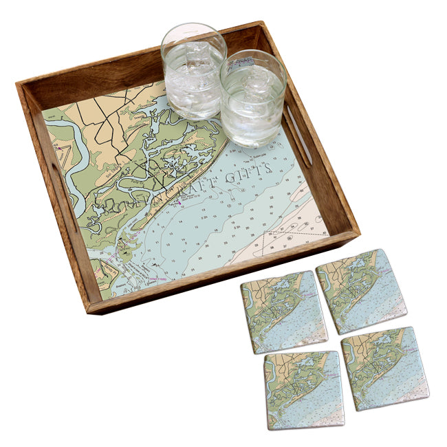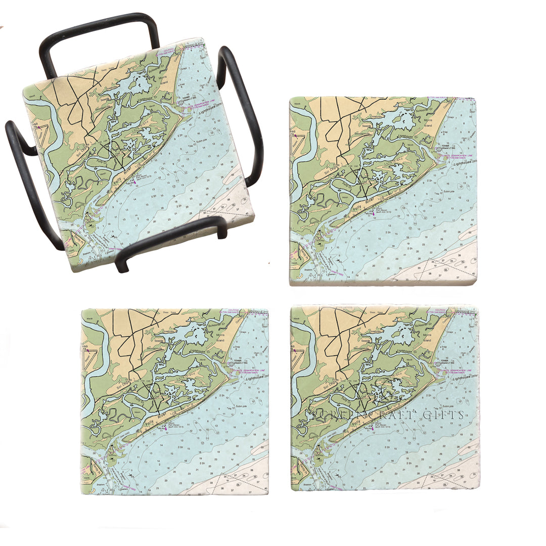 Coaster Set: Four 4" cork-backed coasters with identical images on each coaster.
