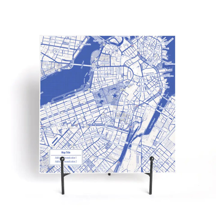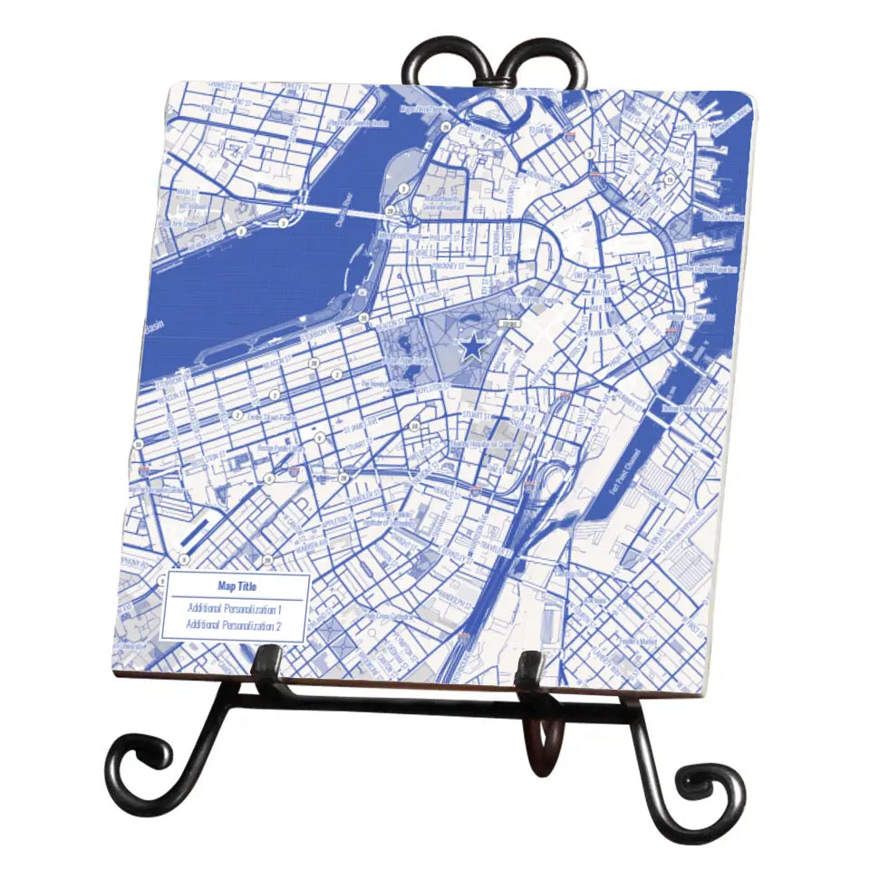 Trivet: 8" marble tile with cork backing to protect furniture. Custom cast-iron display easel also available.
