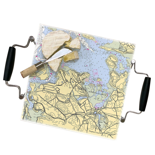 12" tempered glass perfect for preparation and entertaining.  Use as a cutting board and a serving tray. Rubber feet to grip surfaces. Not Dishwasher safe. Rubber feet to grip surfaces.