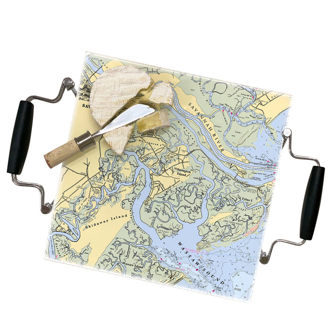 12" tempered glass perfect for preparation and entertaining.  Use as a cutting board and a serving tray. Rubber feet to grip surfaces. Not Dishwasher safe. Rubber feet to grip surfaces.