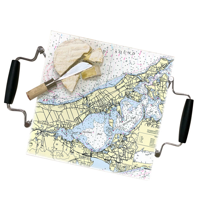 12" tempered glass perfect for preparation and entertaining.  Use as a cutting board and a serving tray. Rubber feet to grip surfaces. Not Dishwasher safe. Rubber feet to grip surfaces.