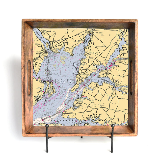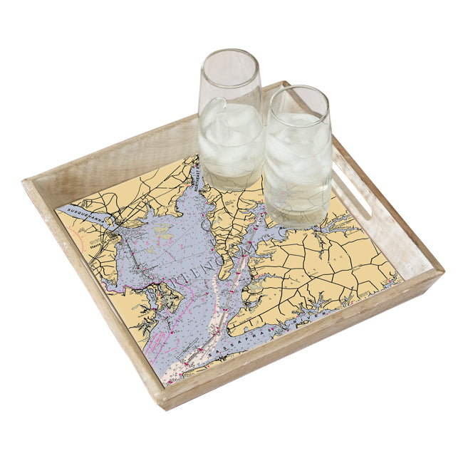 Burnt Wood Serving Tray: 14" mango wood serving tray with a matching image.