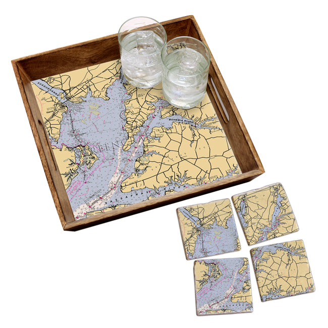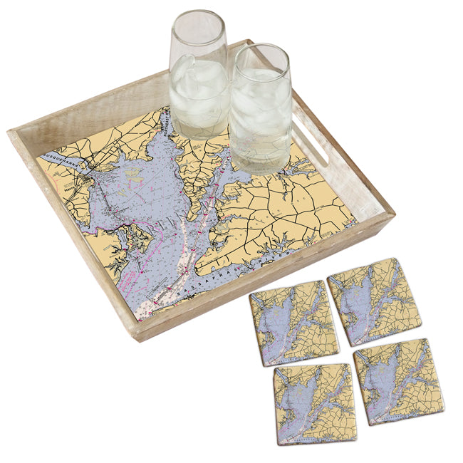 Coaster Set: Four 4" cork-backed coasters with identical images on each coaster.