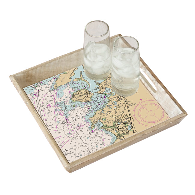 Burnt Wood Serving Tray: 14" mango wood serving tray with a matching image.
