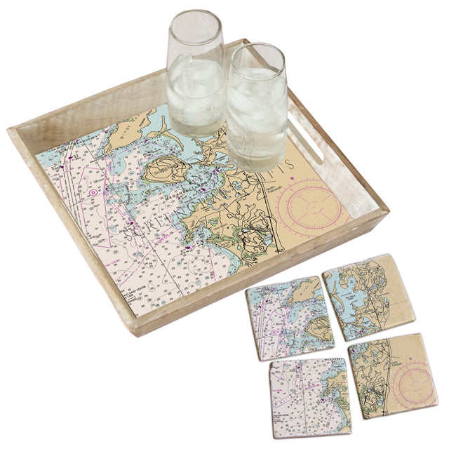 Coaster Set: Four 4" cork-backed coasters with identical images on each coaster.