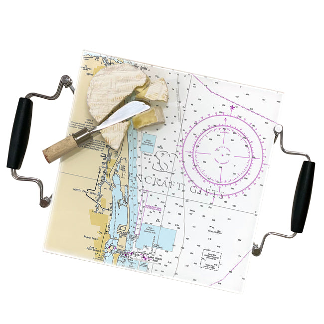 12" tempered glass perfect for preparation and entertaining.  Use as a cutting board and a serving tray. Rubber feet to grip surfaces. Not Dishwasher safe. Rubber feet to grip surfaces.