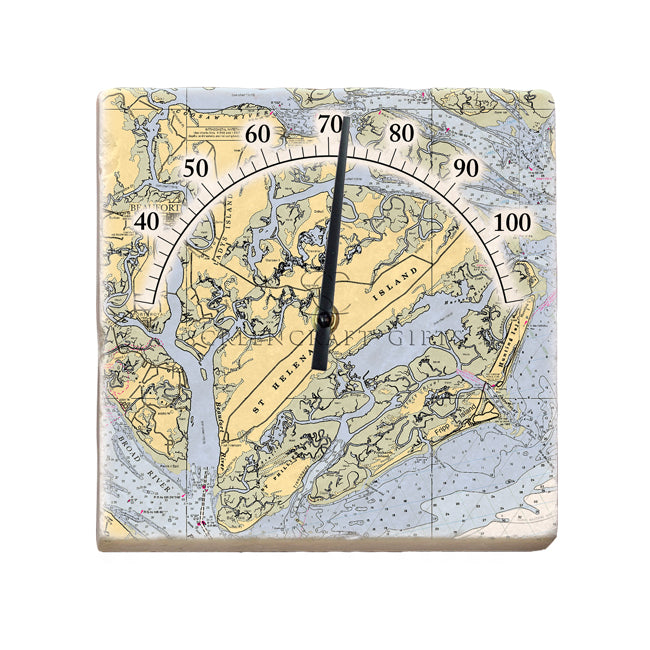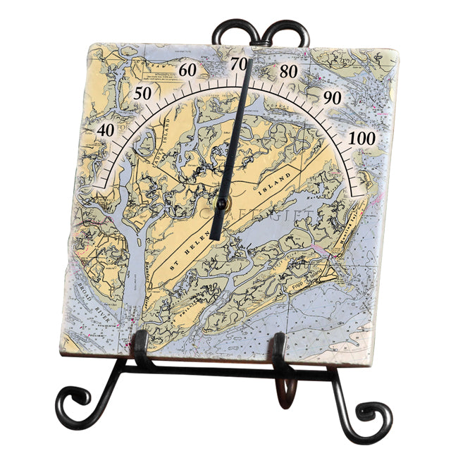 Marble Thermometer: 8" marble tile equipped a standard thermometer mechanism. Battery not included. Thermometers are perfect for covered porch and patio use. For best results, do not leave in direct sunlight or directly exposed to harsh elements.