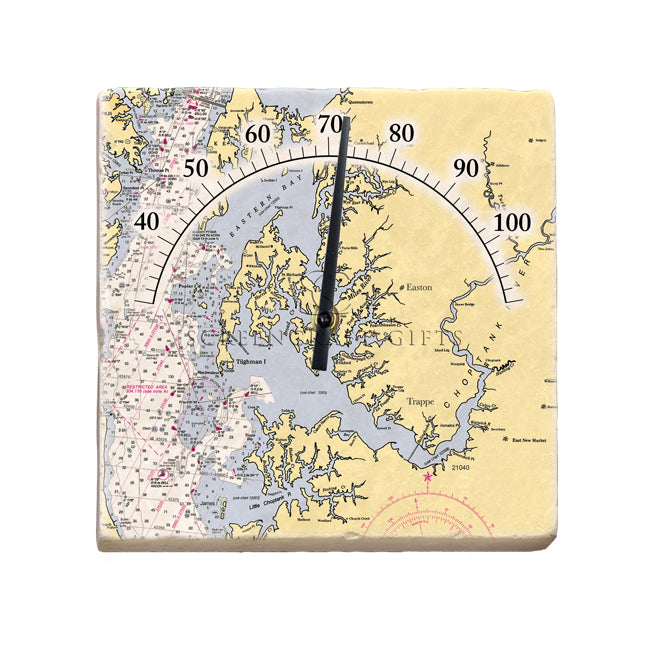 Marble Thermometer: 8" marble tile equipped a standard thermometer mechanism. Battery not included. Thermometers are perfect for covered porch and patio use. For best results, do not leave in direct sunlight or directly exposed to harsh elements.